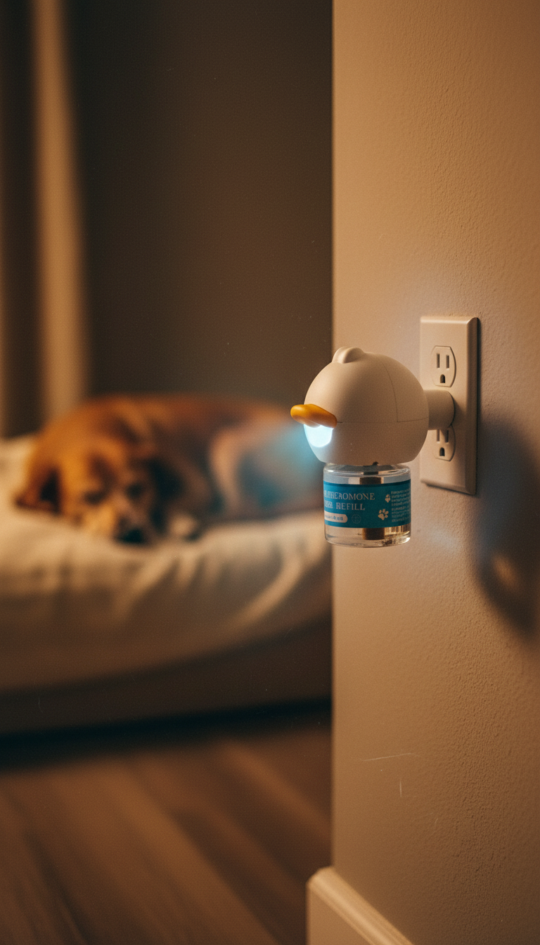 Our diffuser releases a natural calming pheromone that signals safety to your dog’s nervous system.