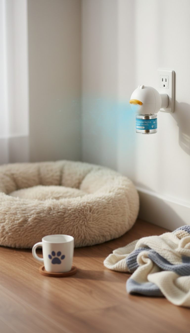 Ease your furry friend's anxiety with our innovative calming spray, designed to soothe pets' emotions using a pheromone-based formula enhanced by gentle electric heating.